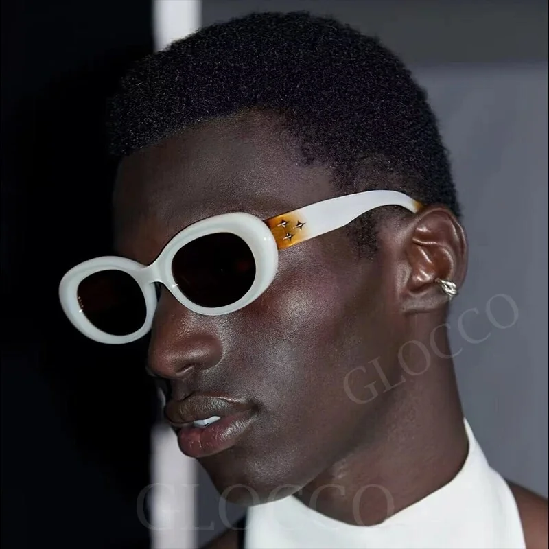 Small Round Sunglasses Men Women Brand Designer Y2K Star Nail Sun Glasses Shades UV400 Vintage White Oval Sunglasses